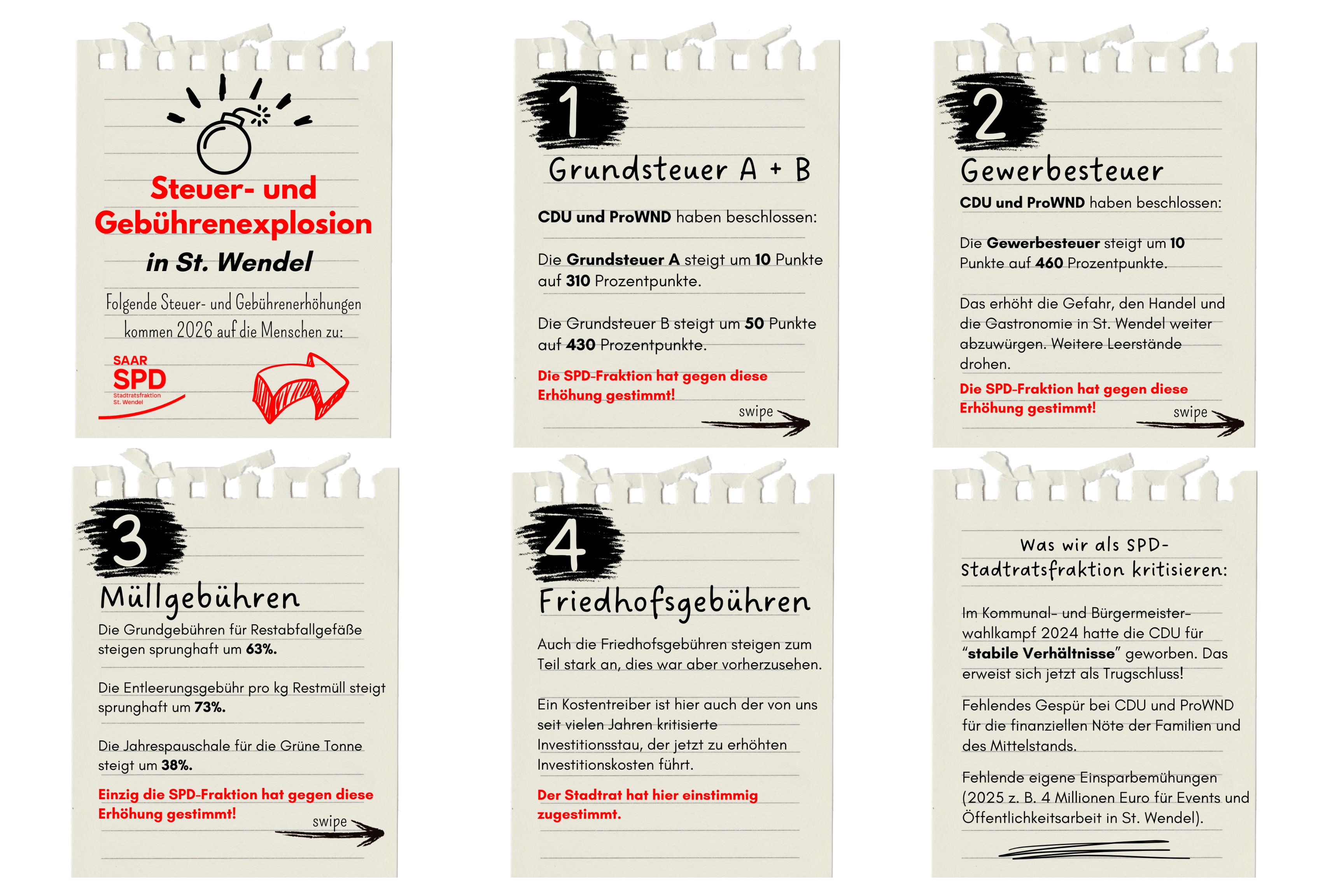 Besonders deutlich kritisiert Müller den Widerspruch zum Kommunal- und Bürgermeisterwahlkampf 2024. Damals hatten CDU und Bürgermeister mit dem Slogan „Stabile Verhältnisse“ geworben und den Bürgerinnen und Bürgern zugesichert, dass Gebühren und Abgaben in Sankt Wendel stabil bleiben würden.