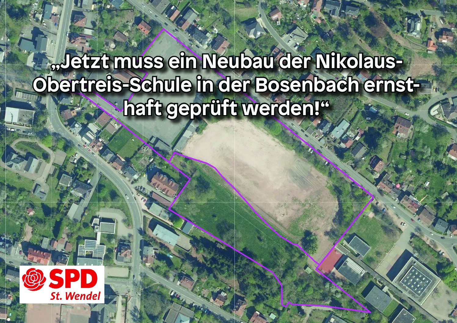 Schon im Frühjahr 2019 wurde, nachdem die SPD das Thema zuvor öffentlich angestoßen hatte, vom St. Wendeler Stadtrat ein Standortgutachten für die Nikolaus-Obertreis-Grundschule in Auftrag gegeben. Grund war der noch heute marode Zustand von St. Wendels größter Grundschule. Untersucht wurden in der Folge vier Standortvarianten, nämlich die Sanierung am bestehenden Standort, ein Umzug ins Missionshaus, ein Umzug plus Erweiterungsbau in Alsfassen sowie ein Neubau in der Bosenbach. Nachdem die Sanierung am bestehenden Standort schon schnell ausgeschlossen wurde, da eine Sanierung im laufenden Schulbetrieb jahrelange lärmintensive Beeinträchtigungen und kostspielige Containerlösungen mit sich bringen würde, wurde letztlich im Frühjahr 2021 vom Stadtrat der Beschluss gefasst, dass die Schule nach Alsfassen verlagert werden sollte.